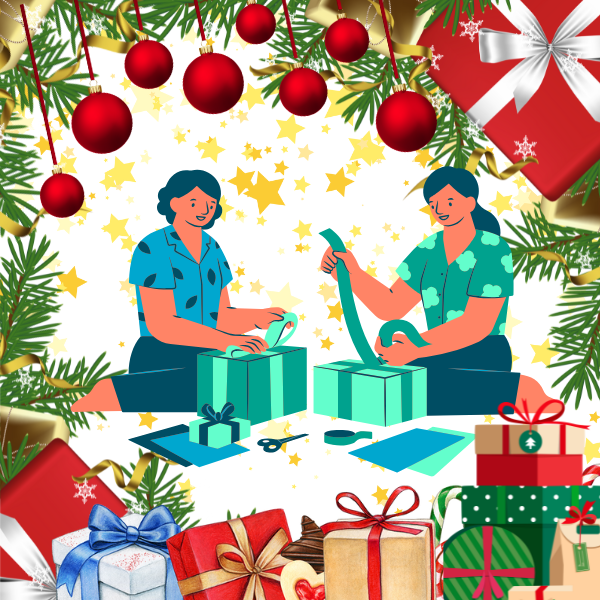 We will have a gift wrapping station. Your elf task will be to wrap the gifts for the clients. We will provide all the wrapping paper, bows and supplies.